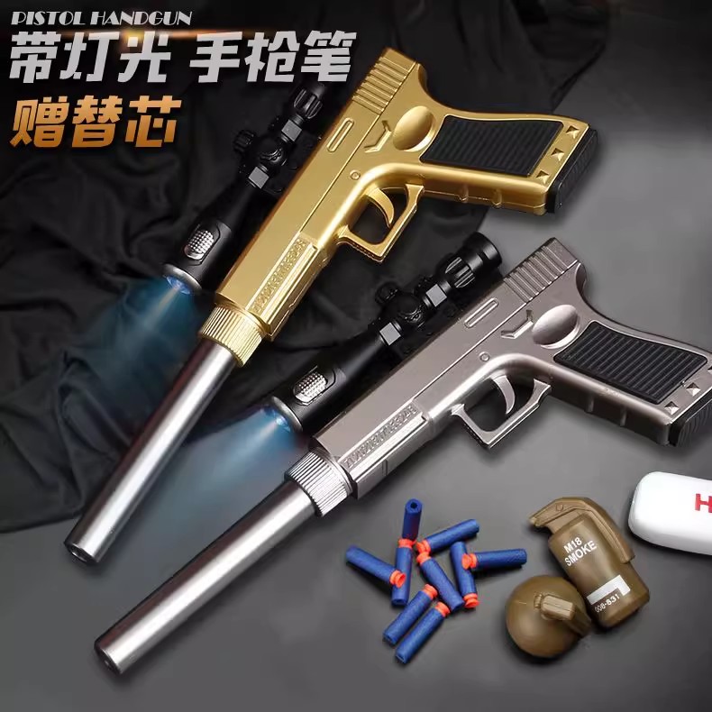 创意文具带灯吃鸡手枪男孩玩具