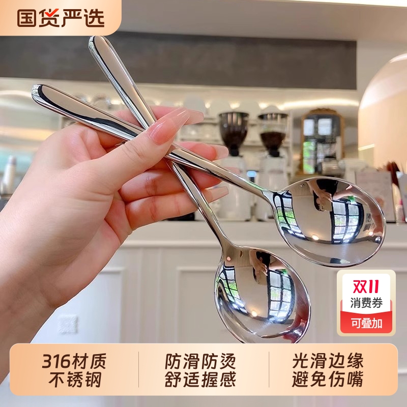 316不锈钢加厚家用干饭勺子304高颜值长柄拌饭勺网红喝汤学生吃