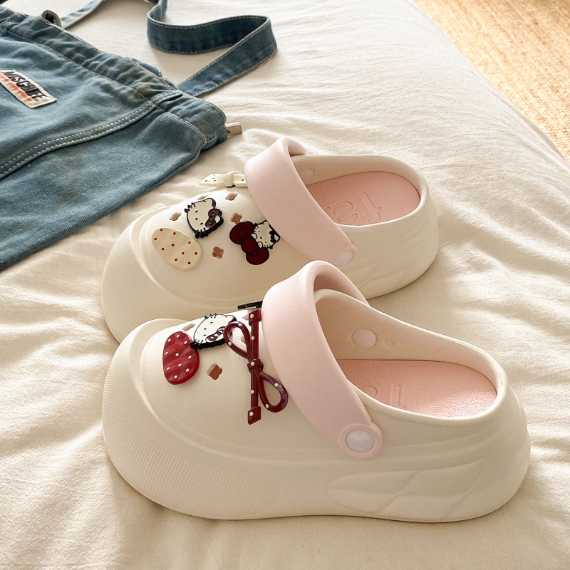 软萌蝴蝶结猫咪厚底洞洞鞋可拆卸