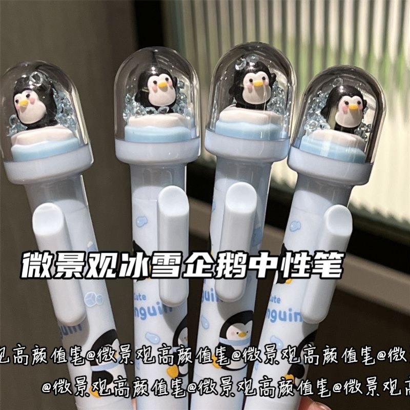 微景观可奇企鹅中性笔高颜值可爱卡通水性学生按动笔刷题黑色0.5