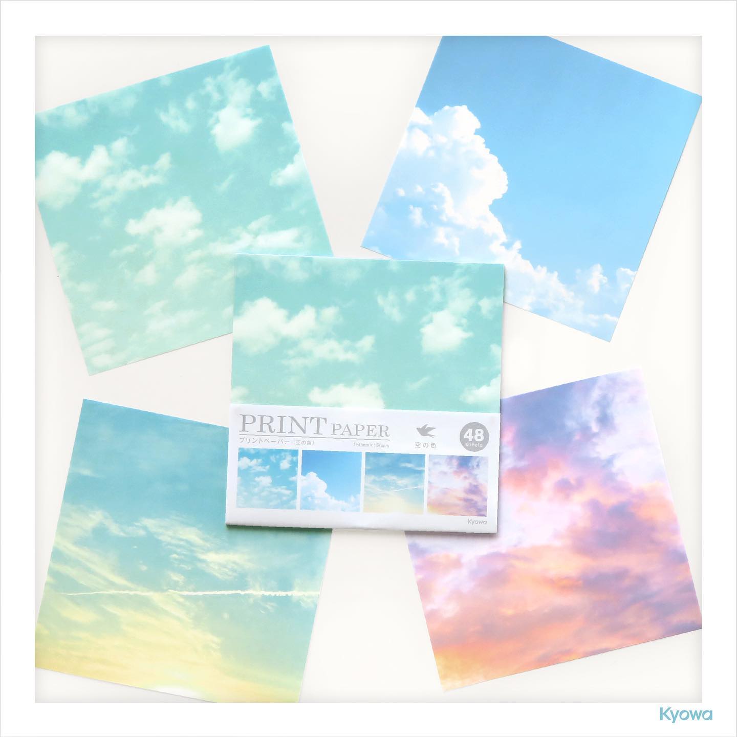日本kyowa天空色印花薄韧彩纸镶嵌紫阳花折纸协和纸工云朵手工