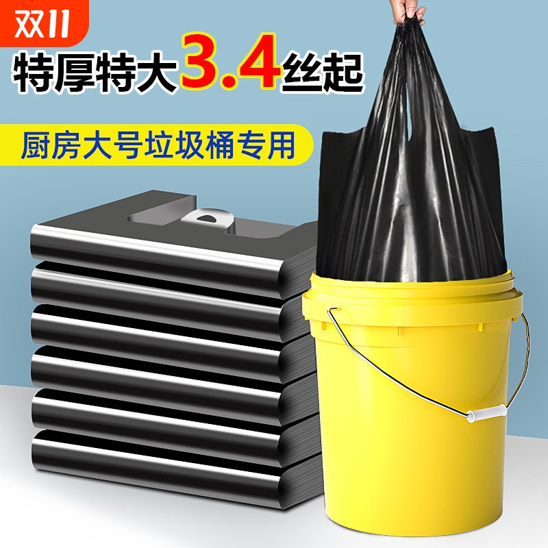 垃圾袋家用背心特厚黑色厨房学生实惠装中大号手提式塑料清洁袋子