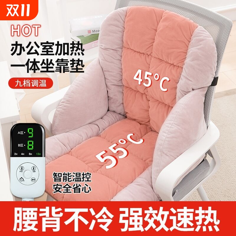 加热坐垫办公室腰靠靠背一体冬季学生椅垫取暖插电久坐新款可拆洗