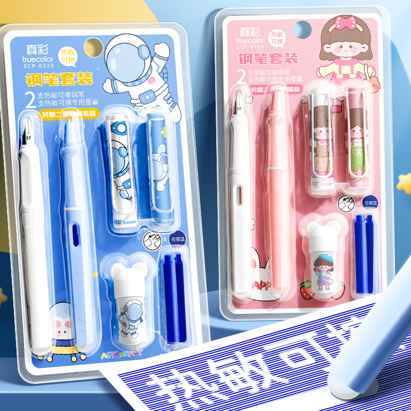 真彩小学生热敏可擦钢笔三四年级学生儿童专用女生替换墨囊晶蓝墨蓝可