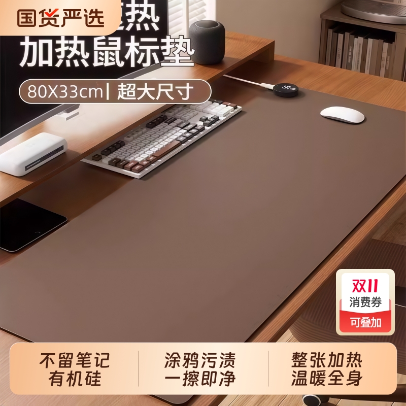 加热鼠标垫暖桌垫办公室电脑桌面学生写作业超大防水发热桌垫暖手
