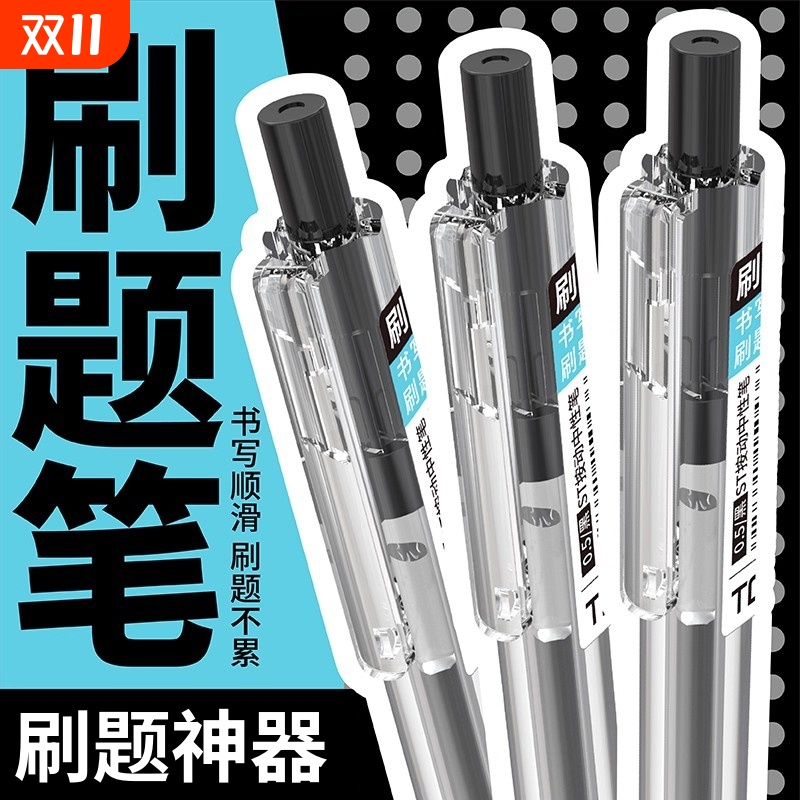 新款刷题笔按动中性笔0.5碳素黑色水性签字笔按压式圆珠笔ST笔尖
