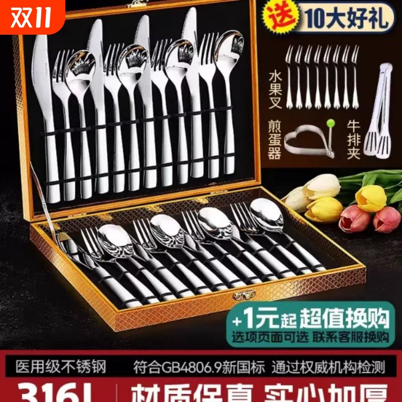 304不锈钢西餐餐具刀叉全套刀叉勺三件套牛排盘子套装家用316实