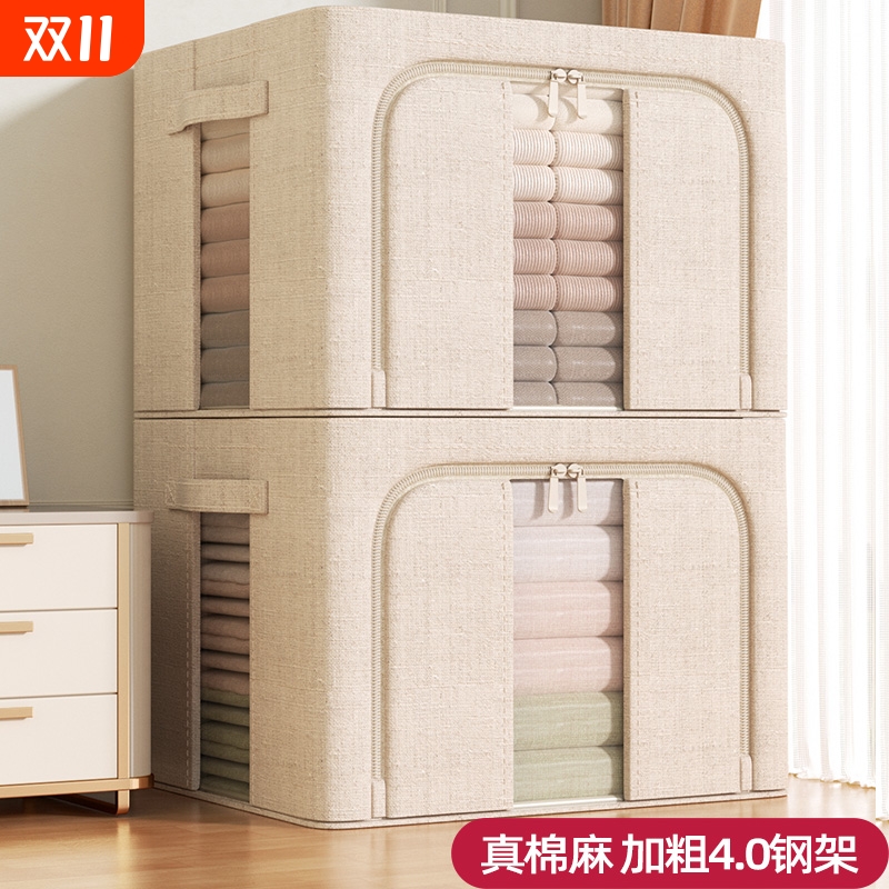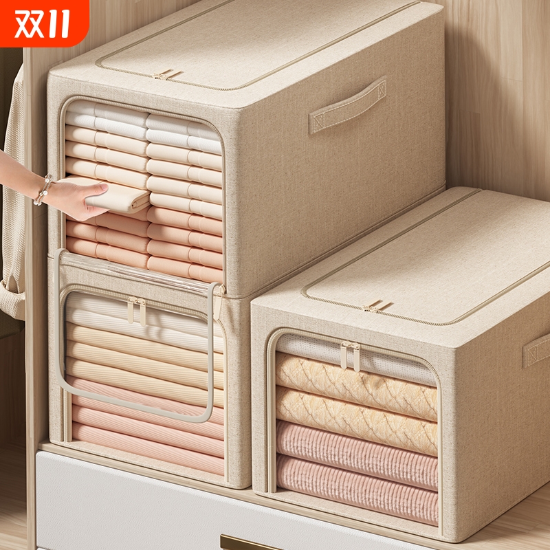 千鸟格衣服收纳箱家用衣柜放裤子PP板棉麻布艺折叠整理盒多规格