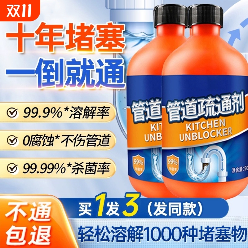 管道下水道强力疏通剂溶解通马桶厕所堵塞厨房除臭神器液油污液体