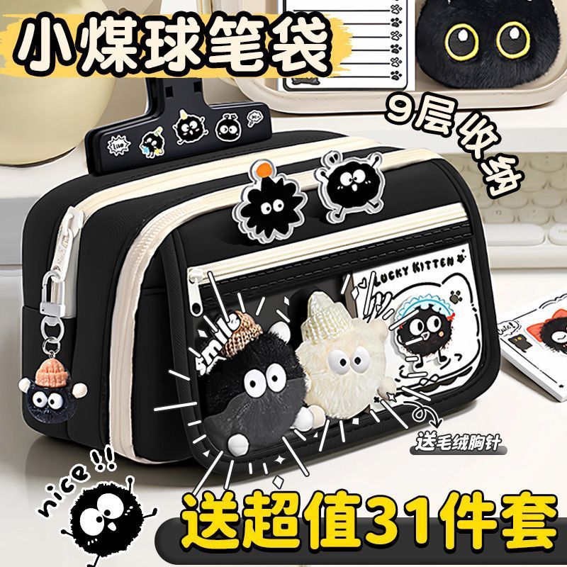 大容量笔袋多层透明隐藏痛包男孩黑色耐脏简约2025新款文具袋二次