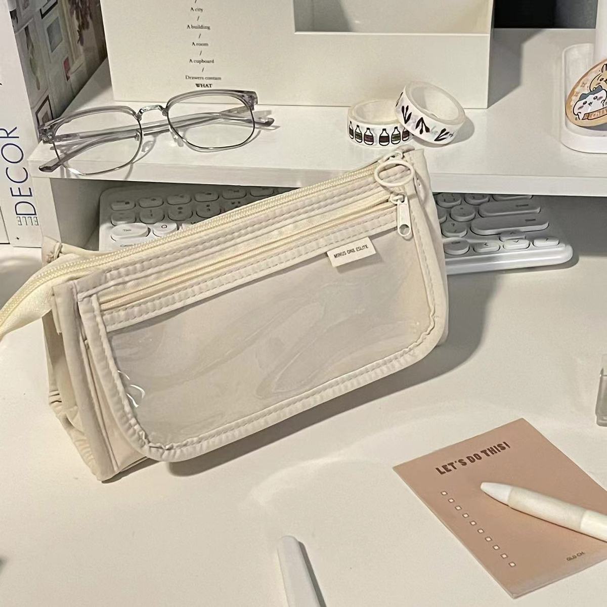 简约多功能撞色大容量笔袋手提高颜值吧唧痛包文具收纳袋文具袋