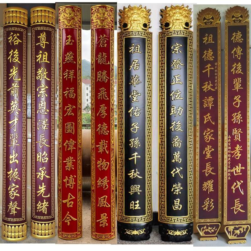 实木对联牌匾圆弧楹联祠堂宗祠寺庙木质匾额雕刻书法刻字白色黑色
