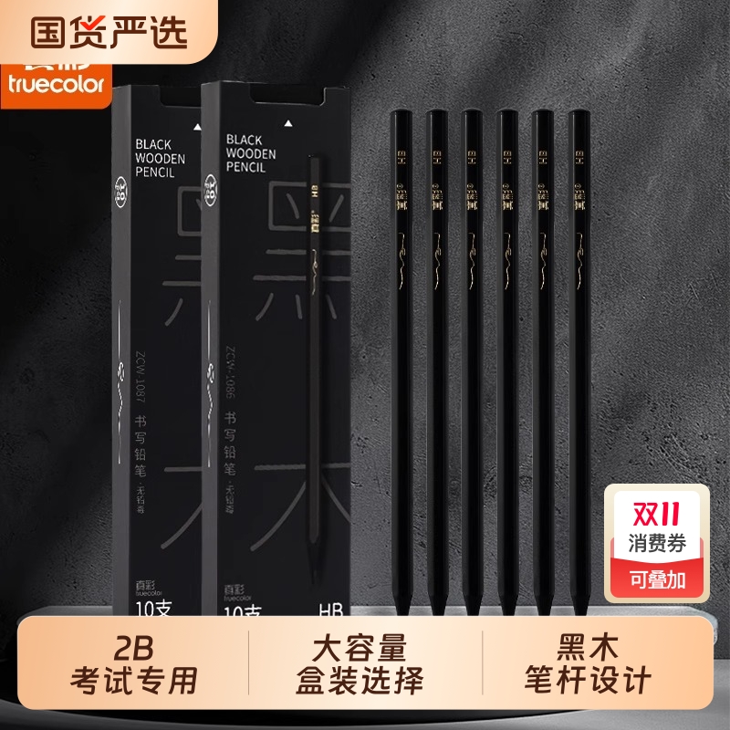 真彩黑木铅笔2B铅笔小学生无毒HB