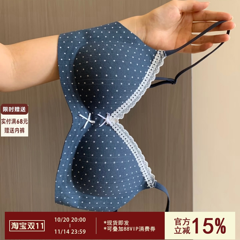 法式甜美性感螺纹碎花蕾丝边内衣女士小胸聚拢上托收副乳透气文胸