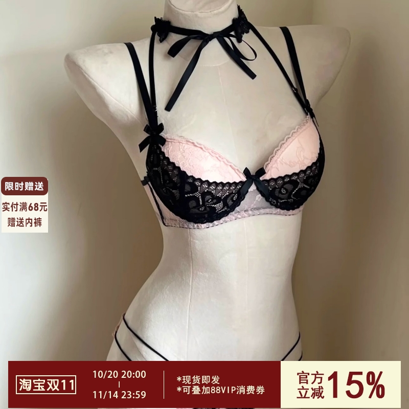 2025新款爆款内衣女蕾丝无钢圈小胸聚拢上托收副乳挂脖美背文胸罩