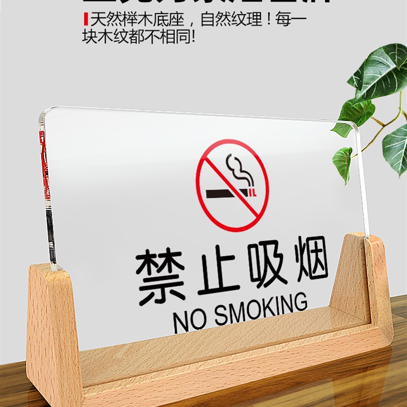 亚克力禁止吸烟提示牌立牌桌牌台卡请勿卧床吸烟标志请勿吸烟标识