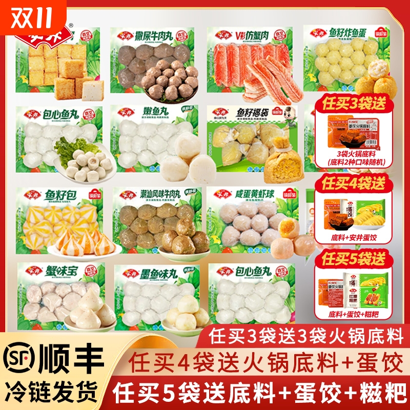 安井火锅丸子虾滑鱼丸撒尿牛肉丸鱼籽包鱼豆腐关东煮食材速冻包心