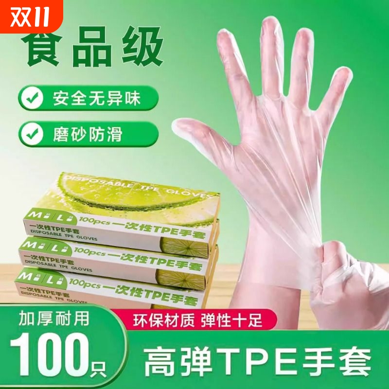 一次性手套食品级专用tpe特加厚耐磨用厨房餐饮家用的塑料薄膜盒