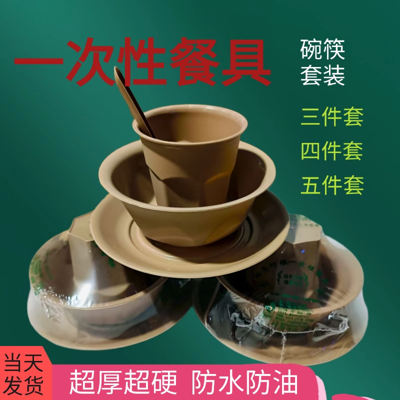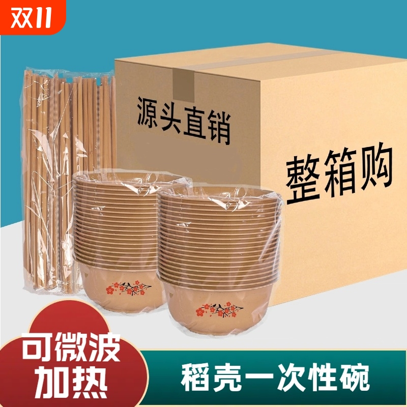 稻壳一次性餐具碗筷食品级家用饭碗加厚耐高温盘子套装户外的聚餐