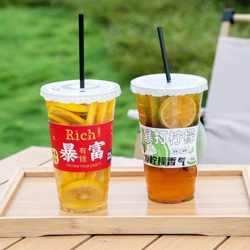 暴打手打柠檬茶杯子一次性带盖摆摊的爆打专用杯家用杯套商用