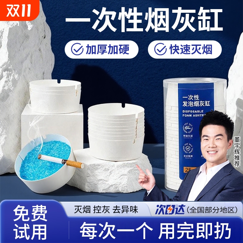 烟灰缸自带灭烟沙一次性泥清洁剂办公室吸附防飞灰便携家用卧室