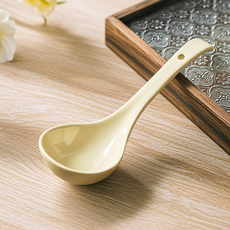 陶瓷大汤勺食品级大号盛汤长柄奶油色汤勺子家用高档精致稀饭粥勺