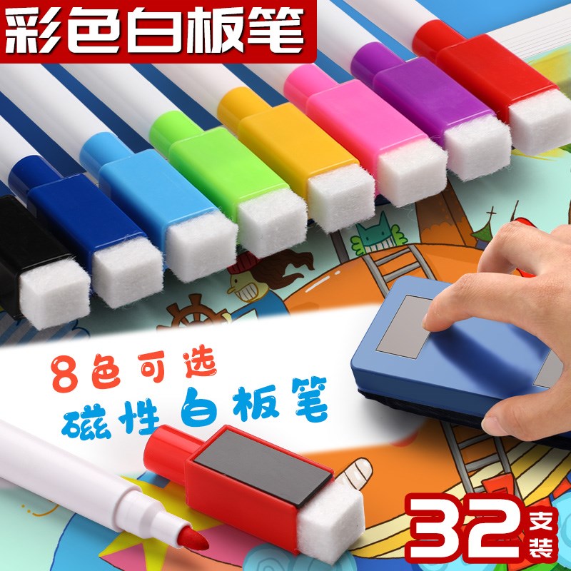 彩色白板笔可擦儿童画板笔磁性安全细头小号极细易擦写水性黑控笔