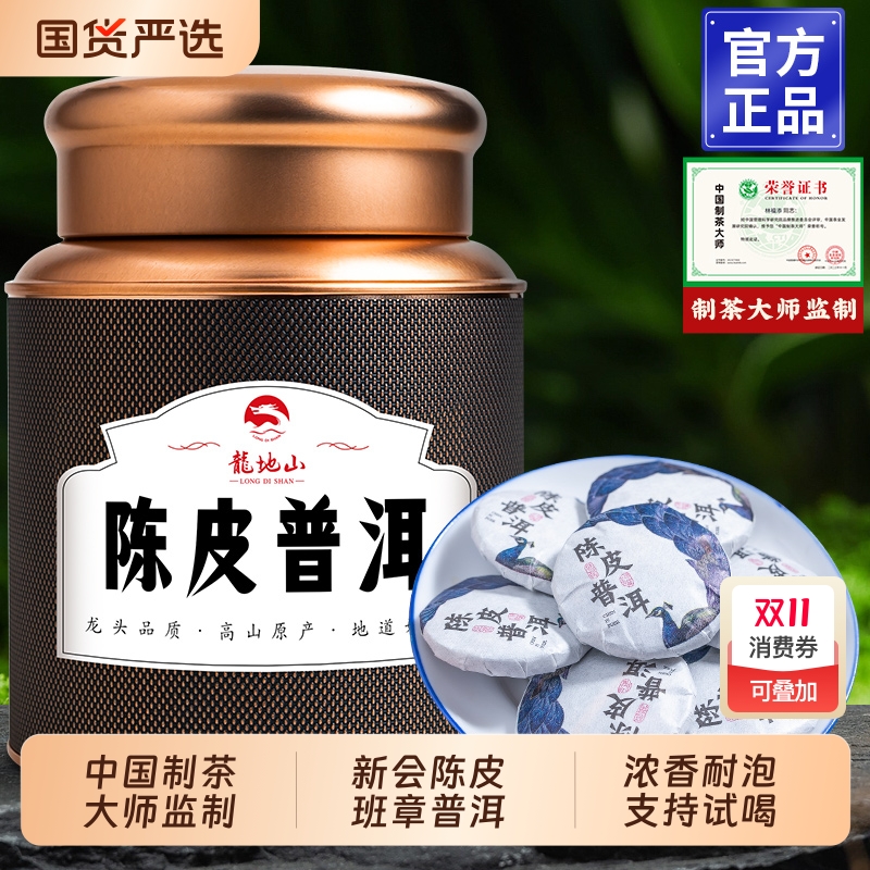 龙地山陈皮普洱茶饼茶叶柑普茶陈年熟茶正宗云南小饼干自己喝的茶