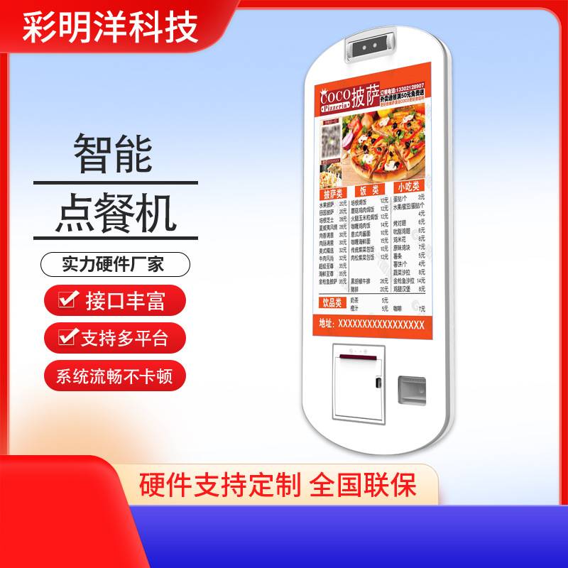 32寸自助结算一体机白色船形外观餐厅商场凭条小票不干胶打印大屏