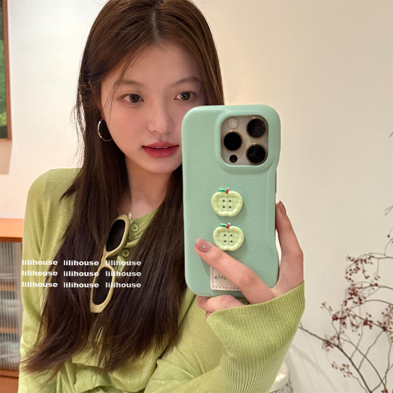 lilihouse简约ins少女清新纯色皮质立体苹果15适用16