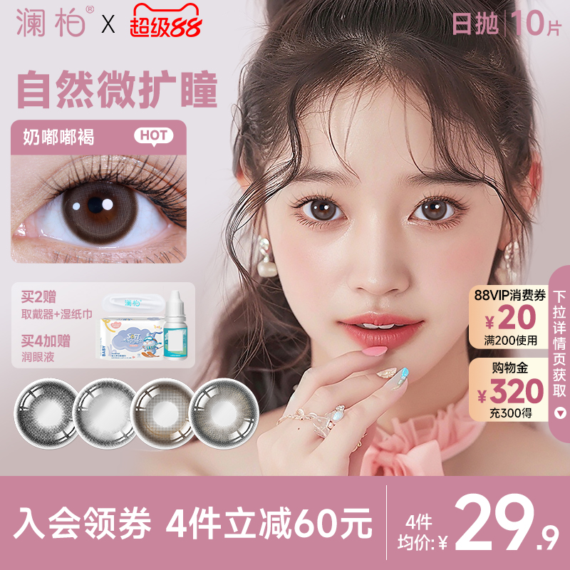 澜柏啾咪美瞳日抛10片自然小直径彩色隐形近视眼镜棕黑灰紫旗舰店