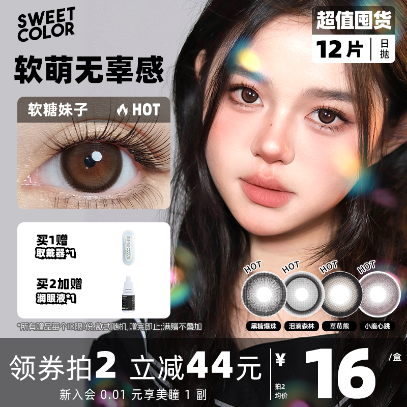 【日抛12片】SweetColor美瞳自然日常通勤软糖妹子黑色隐