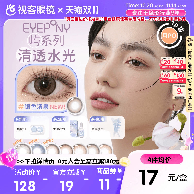 EYEPONY美瞳女月抛1片月晕灰屿麋褐自然小直径女彩色隐形眼镜