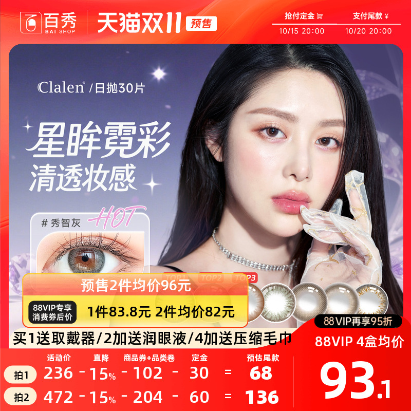 预售】Clalen可俪兰iris秀智灰美瞳日抛30片小直径彩色隐