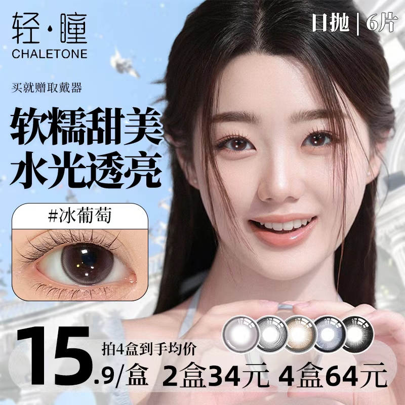 轻瞳美瞳日抛6片自然通勤日常三明治工艺大小直径冰葡萄隐形眼镜