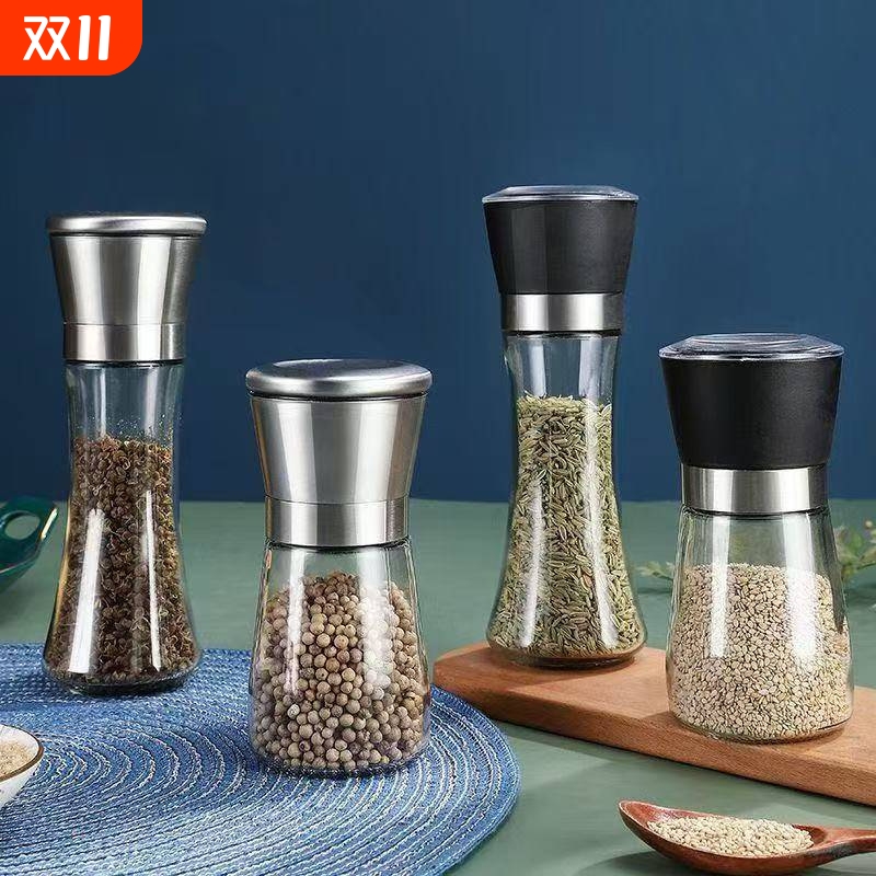 胡椒研磨器304不锈钢家用手动厨房花椒黑胡椒粉粒芝麻海盐研磨瓶