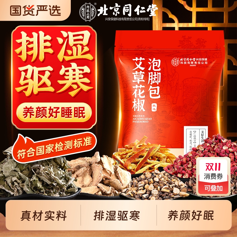 北京同仁堂泡脚药包去湿气排毒助睡眠艾草花椒生姜祛湿驱寒足浴包