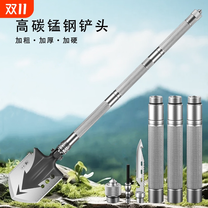 郎神多功能工兵铲钓鱼户外锰钢加厚兵工铲子中国折叠车载露营铁锹