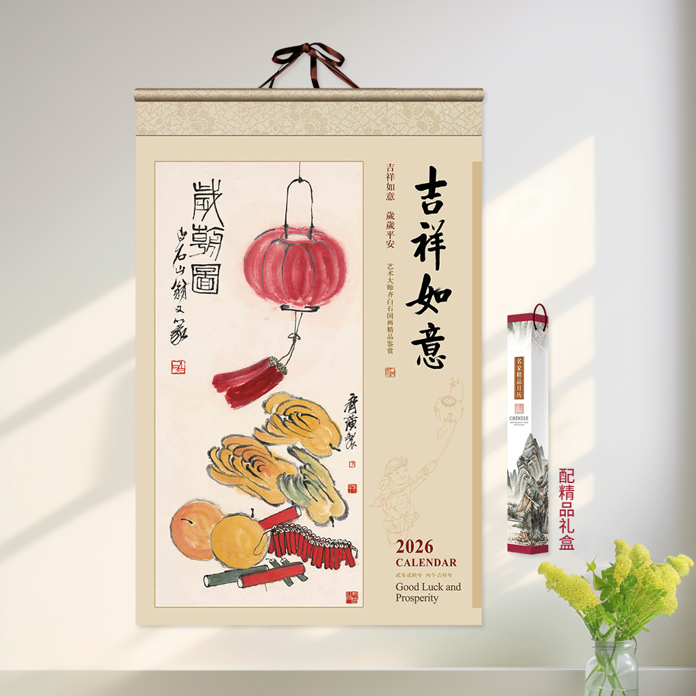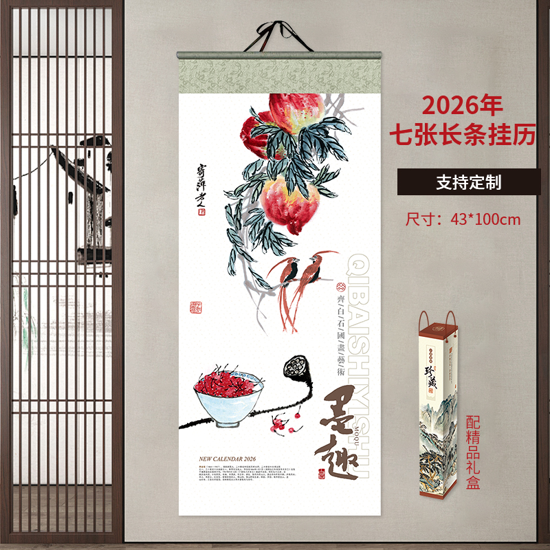 厂家直销特长三开宣纸挂历2026马年中国风墨趣名画家用挂墙式定制