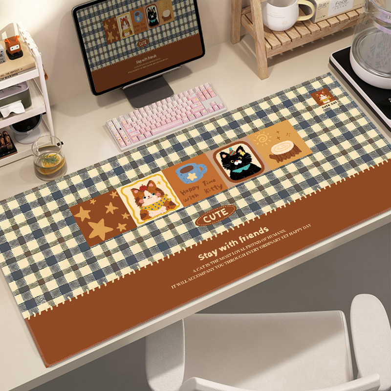 防水皮革大桌垫治愈小猫咪鼠标垫