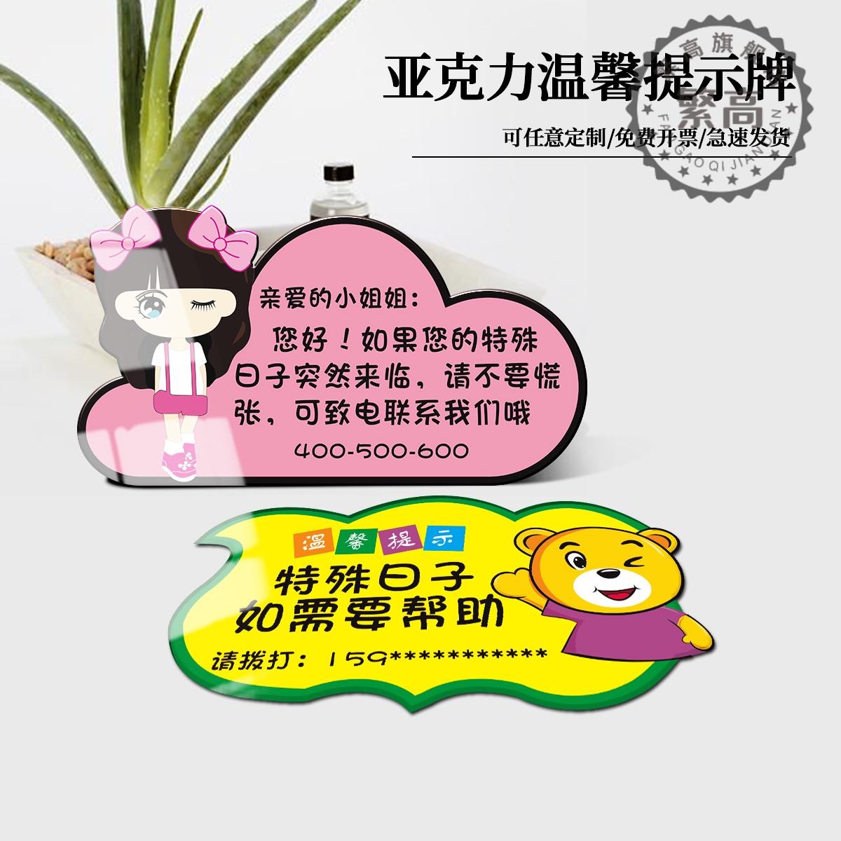 大姨妈洗手间联系电话提示牌