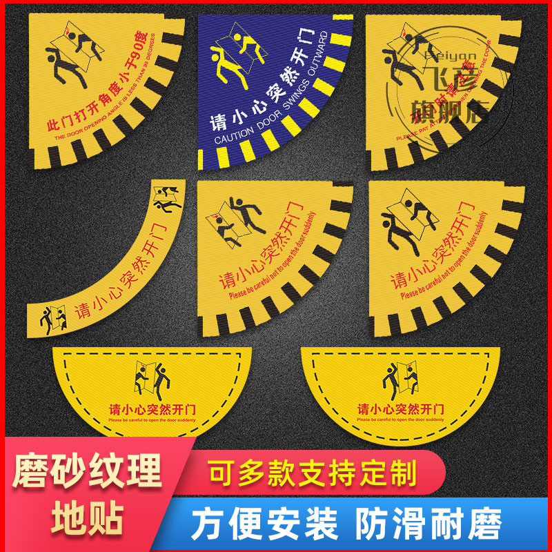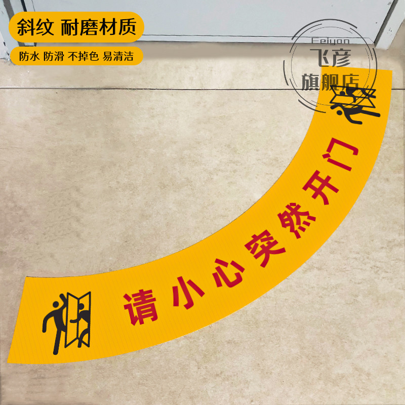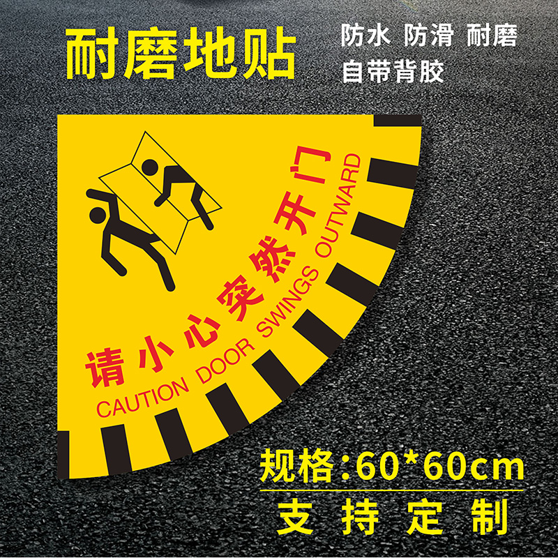 请小心突然开门温馨提示地贴扇形工厂生产车间地面安全提醒出入当心开