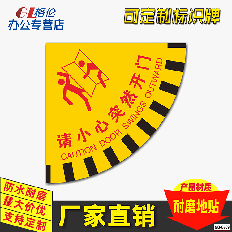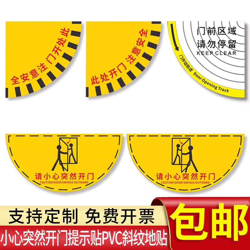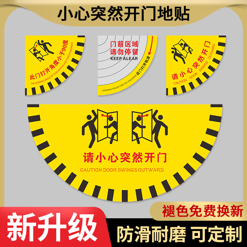 请小心突然开门标识开门提示地贴扇形地贴生产车间标示当心开