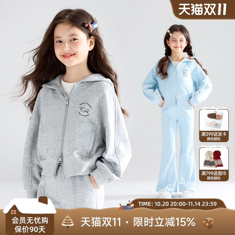 【航海腊肠狗】运动卫衣针织外套连帽喇叭裤子女童新款