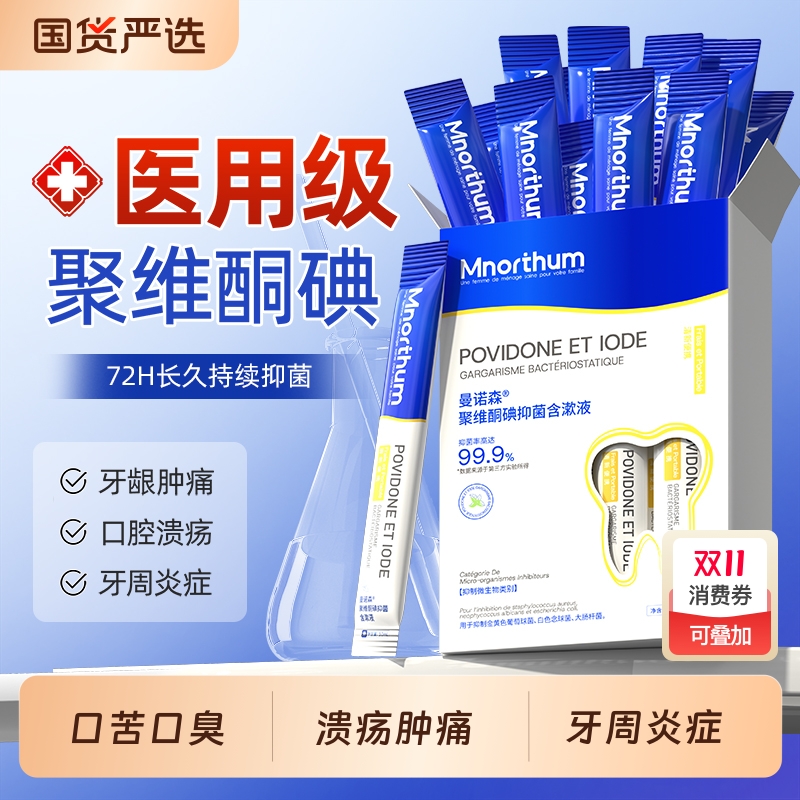 曼诺森聚维酮碘含漱液杀菌除口臭持久留香医用碘伏消牙周炎口腔