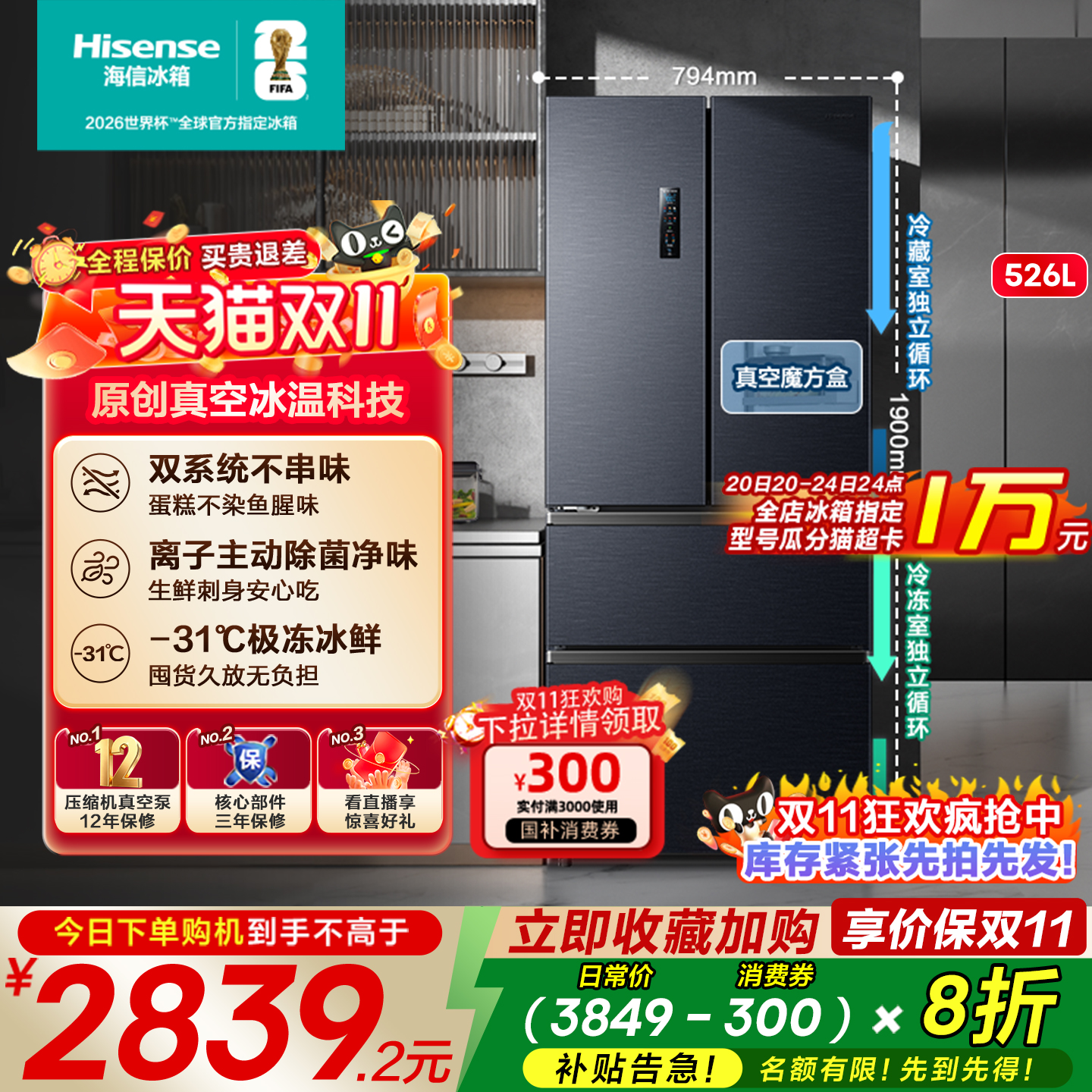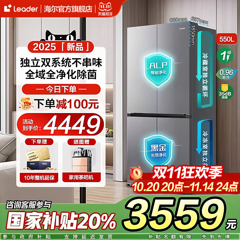 海尔统帅双系统550L十字对开双四门家用大容量一级风冷无霜冰箱