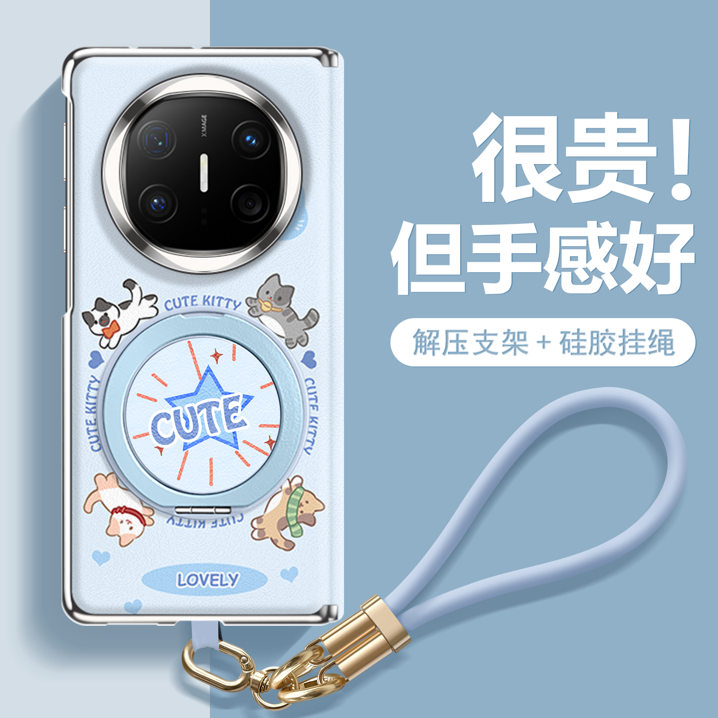 适用华为Pura X阔型屏手机壳高端轻奢素皮腕带旋转支架壳膜一体
