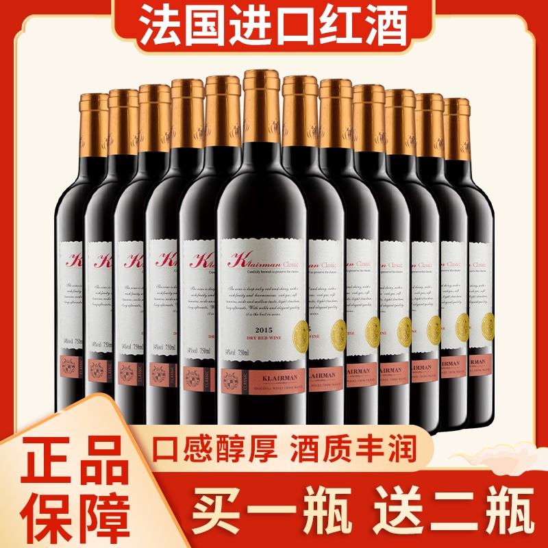法国进口红酒买一瓶送两瓶赤霞珠750ml干红葡萄酒过节聚会送礼酒
