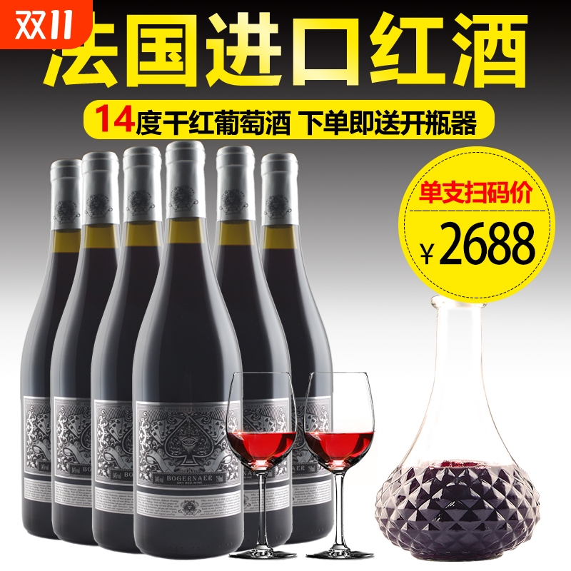 法国进口干红葡萄酒14度750ml赤霞珠红酒过节送礼聚会婚庆喜酒