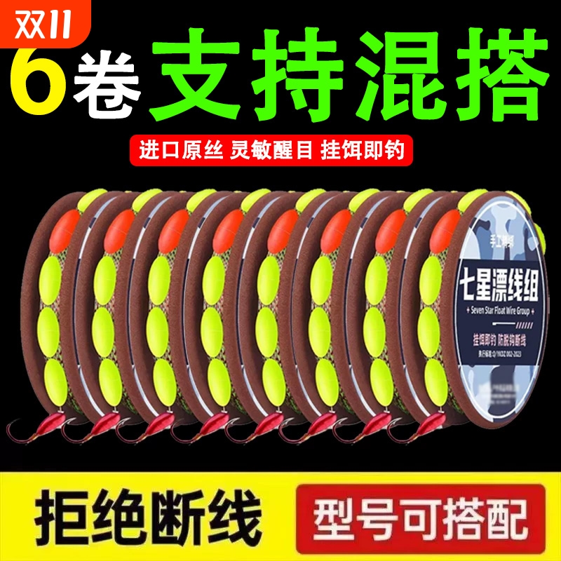 七星漂线组新款朝天钩主线组成品传统钓钓鲫鱼主线浮漂醒目原丝